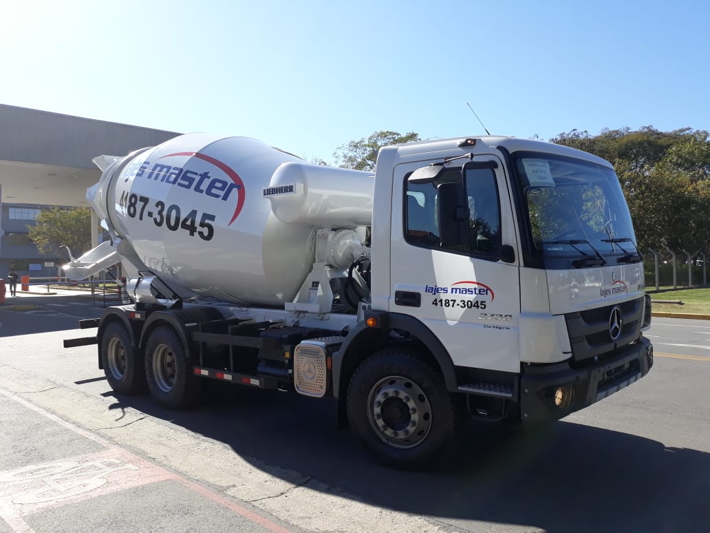 Para garantir entregas imediatas, a Lajes Master conta com frota própria para transporte de lajes e caminhões betoneira com bomba.